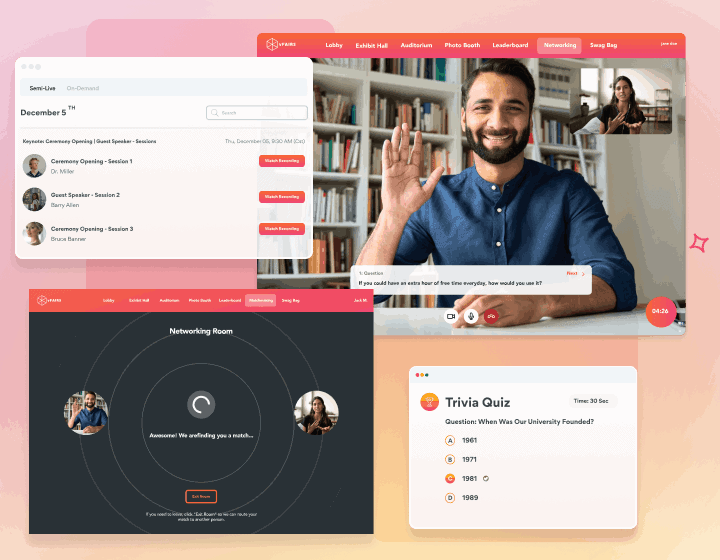 Whether you are hosting a summit for your organization’s members, partners or employees, vFairs online summit features are designed to deliver highly engaging events that will wow every audience.