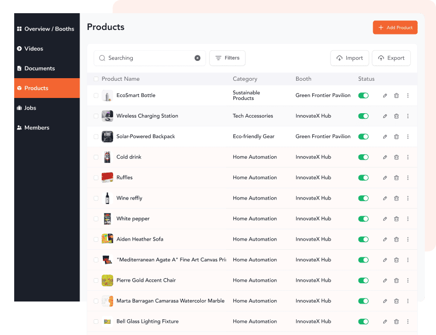 • Offer a unified exhibitor portal to organize, manage, and automate product listings, task assignment, booths, leads and more.