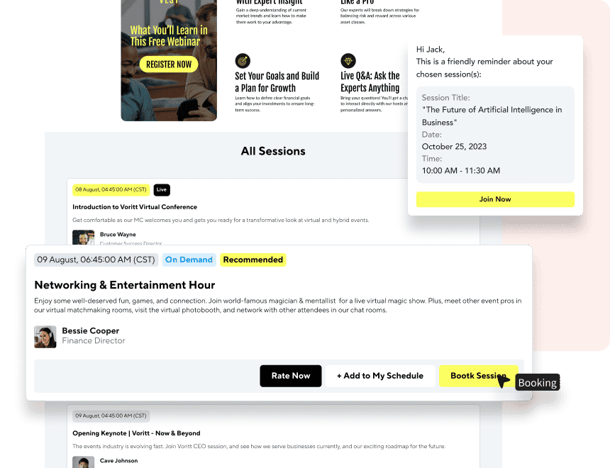 • Send automated reminders to attendees for their chosen sessions.