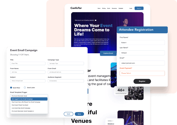 Elevate your event management services for clients with flexible custom features for seamless onsite and online events.